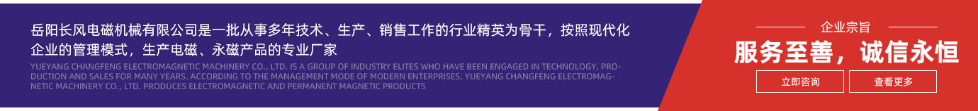 岳陽(yáng)長(zhǎng)風(fēng)電磁機(jī)械有限公司是以原岳陽(yáng)起重電磁鐵廠一批從事多年技術(shù)、生產(chǎn)、銷售工作的行業(yè)精英為骨干,按照現(xiàn)代化企業(yè)的管理模式,經(jīng)過(guò)資產(chǎn)重組而組建成立的新型科技型股份制企業(yè)。工廠既繼承了原岳陽(yáng)起重電磁鐵廠三十多年來(lái)積累的電磁產(chǎn)品開(kāi)發(fā)與生產(chǎn)的理論和實(shí)踐經(jīng)驗(yàn),并加以開(kāi)拓創(chuàng)新,發(fā)揚(yáng)光大;又改變了原國(guó)有企業(yè)陳舊的管理制度與作風(fēng)。企業(yè)如朝陽(yáng)噴薄,正不斷發(fā)展壯大,具有較好的發(fā)展前景。